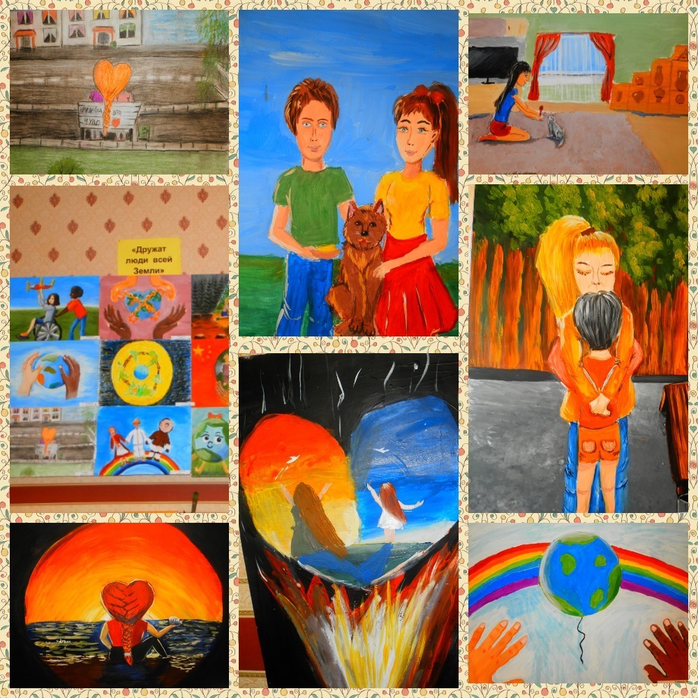 Эти рисунки были отправлены на районный конкурс «Дружат люди всей Земли», организованный Омутнинским металлургическим заводом к Международному дню толерантности.