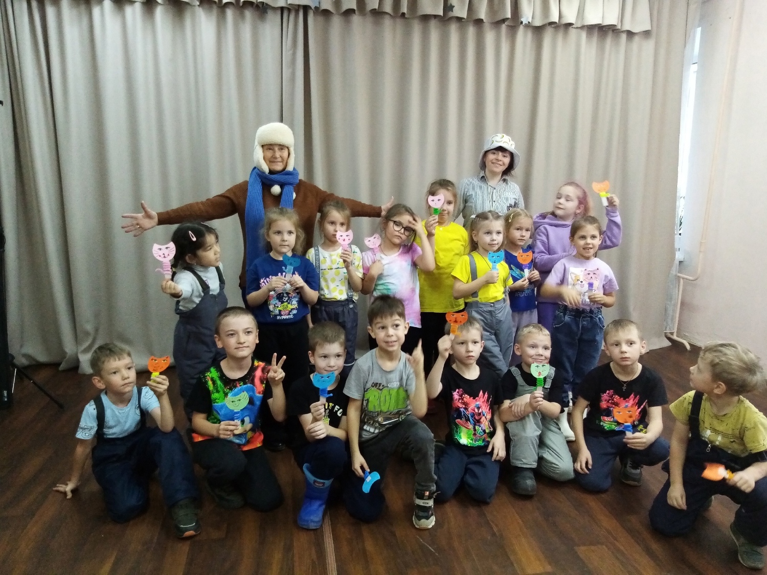 Сказочные персонажи вместе с детьми вспоминали, какие вещи нужно взять с собой в поход, играли в увлекательные игры, делали музыкальную разминку, изготовили забавную игрушку-кошечку.