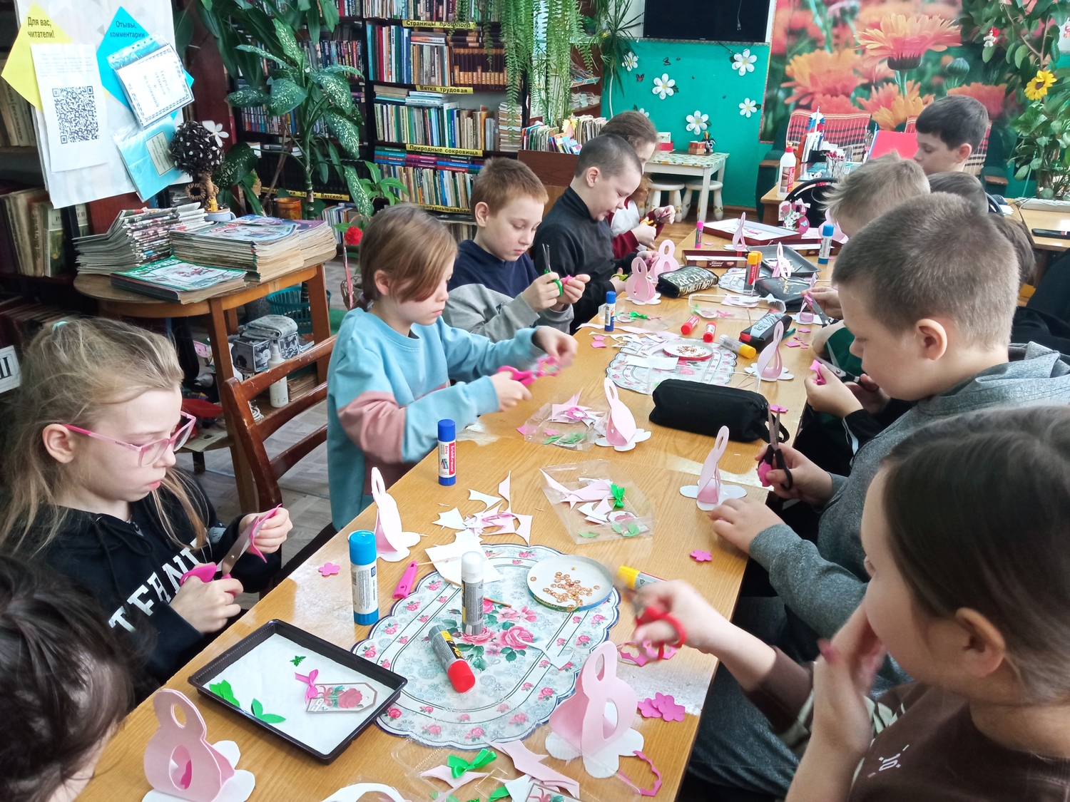 Участники не только вырезали, клеили, подбирали цвета, но и вели беседу о дорогих сердцу мамах. Юные мастера знают, что подарок, приготовленный своими руками, будет самым особенным для самого любимого человека на свете, поэтому очень старались.