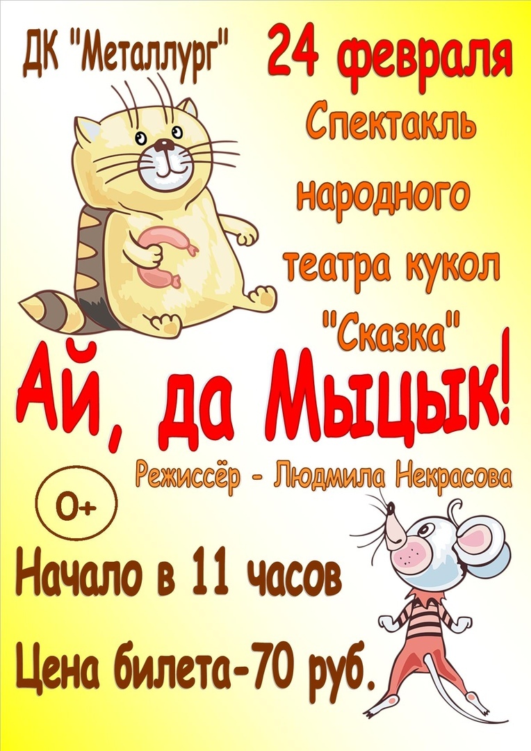 11. 00 Кукольный спектакль «Ай да, Мыцык!» (0+)