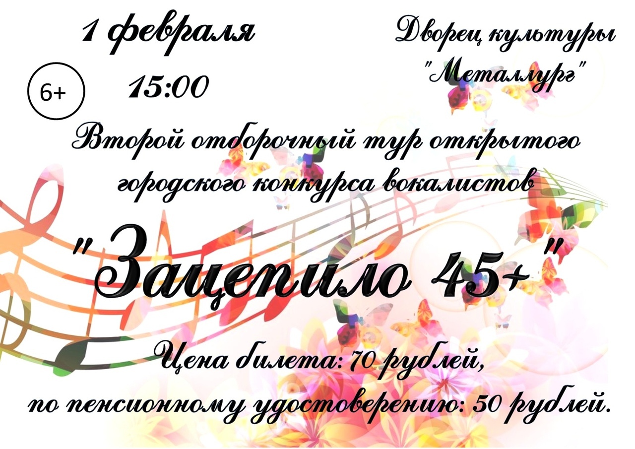 15. 00 Второй отборочный тур открытого городского конкурса «Зацепило 45+» (6+)