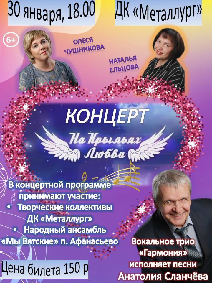 18.00 Концерт «На крыльях любви» вокального трио «Гармония» (6+)