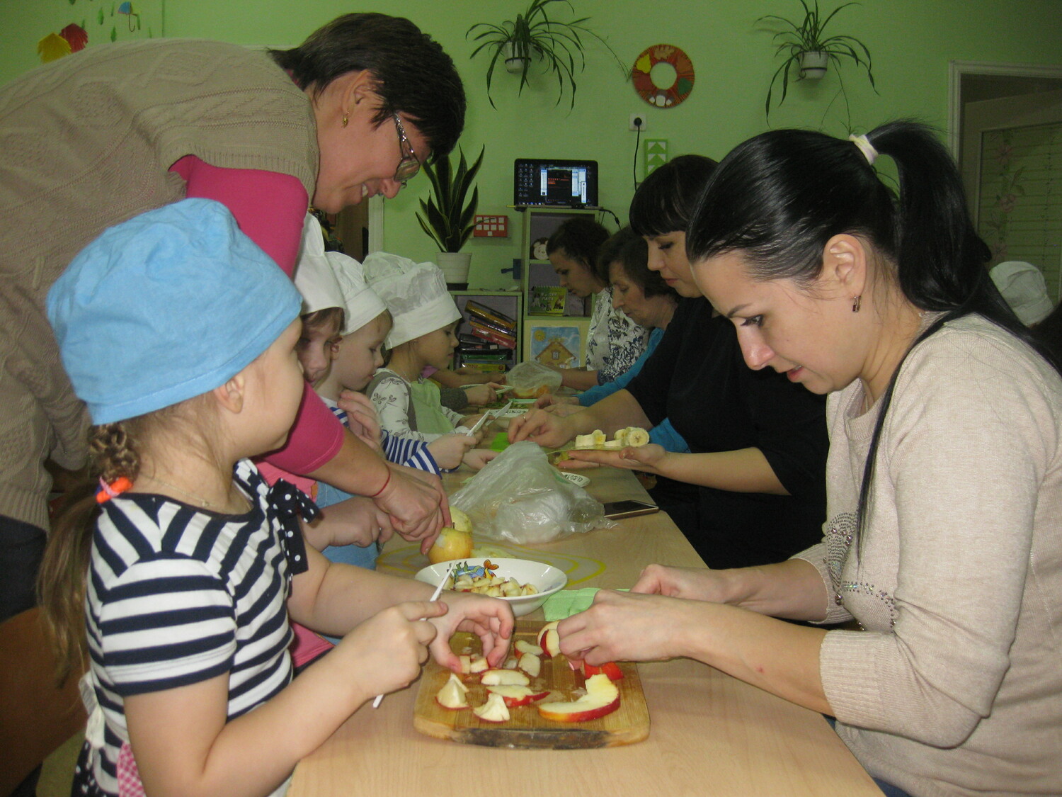 20 ноября для детей подготовительной группы детского сада "Снежинка" п. Восточный и их мам в канун дня матери библиотекари Библиотечного центра «Дом семьи» им. Н.А. Заболоцкого организовали кулинарный мастер-класс "Салат для мамочки». Дети, мамы, а также бабушки вместе нарезали фруктыдля салата, а затем заправили его йогуртом. Во время нарезания фруктов участники мастер-класса узнали о том, какие витамины содержатся в апельсинах, киви, бананах, яблоках, груше. После приготовления вкуснейшего салата состоялась дегустация и поздравление мам с их праздником. Организаторы праздника показали также заранее приготовленные забавные фигурки из фруктов для детского стола. Такаянетрадиционная для библиотекформа мероприятия понравилось всем: детям, их мамам и организаторам мастер-класса.