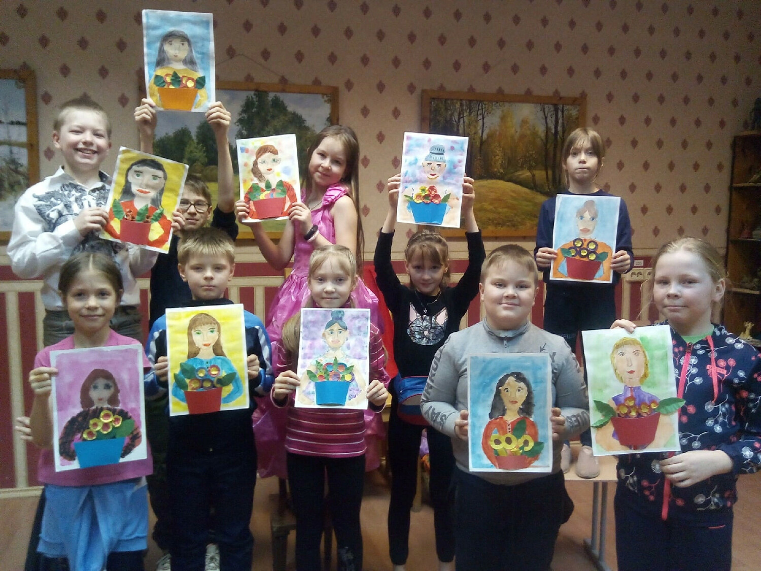 В день 8 Марта учащиеся художественного отделения традиционно поздравляли самых дорогих женщин - своих мам. Они приготовили подарки. А что может подарить ребенок на 8 марта своей маме? Для любой мамы самым лучшим подарком в Международный женский день будет рисунок с цветами, выполненный прилежно и старательно ее ребенком. На этот раз учащиеся подготовительного класса изготовили подарки в комбинированной технике: рисунка и аппликации. На рисунках учащиеся изобразили портреты своих мам. Аппликацией был изготовлен цветок из бумаги. Помогла им в этом преподаватель художественного отделения ДШИ Ситчихина Е.В.