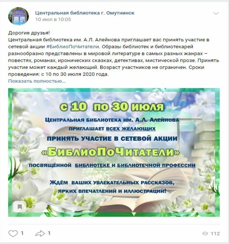 Центральная библиотека им. А.Л. Алейнова пригласила подписчиков и гостей присоединиться к сетевой акции #БиблиоПоЧитатели, поделившись своими яркими впечатлениями об образах библиотекарей в разнообразных жанрах художественной литературы, пытаясь развеять миф «библиотекаря синего чулки», представив его в совершенно новых качествах: искусствоведа, журналиста, детектива, гастрономического гурмана и т.д.