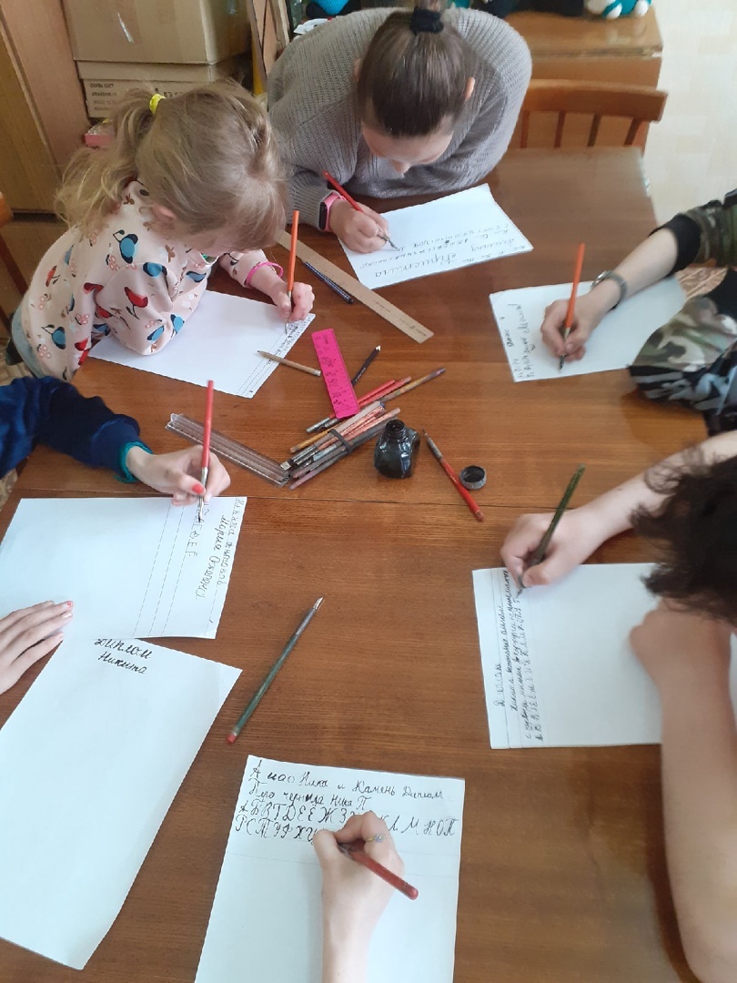 В ходе мероприятия ребятам рассказали о празднике, его истории и значении для культуры России. Девочки и мальчики проследили историю возникновения книги: как буквы с камня переходили на глину, с глины на папирус, с папируса - на восковую дощечку, с далее на пергамент и вот - на ту самую бумагу, на которой мы пишем, из которой сделаны книги. И самое интересное, ребята прикоснулись к искусству писать пером и чернилами.