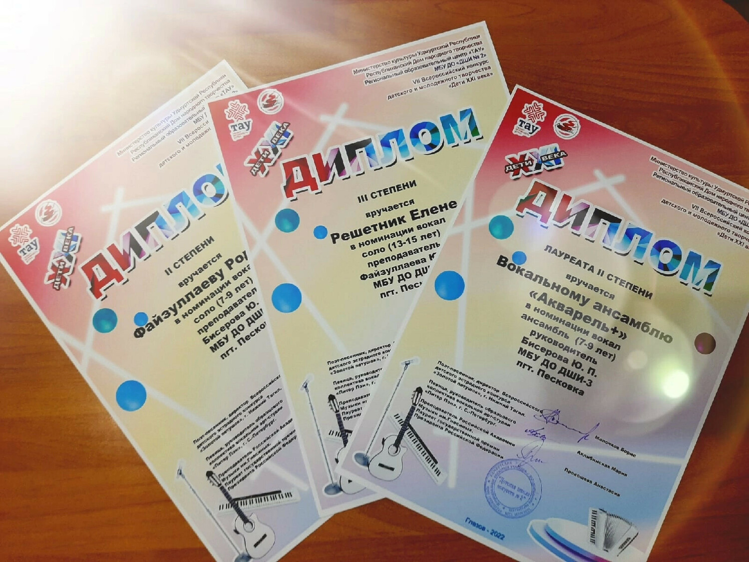 Домой песковчане вернулись с отличными результатами.Вокальный ансамбль «Акварель+» - отмечен Дипломом Лауреата 2 степени, Файзуллаев Родион – награжден Дипломом 2 степени, Решетник Елена - Дипломом 3 степени.