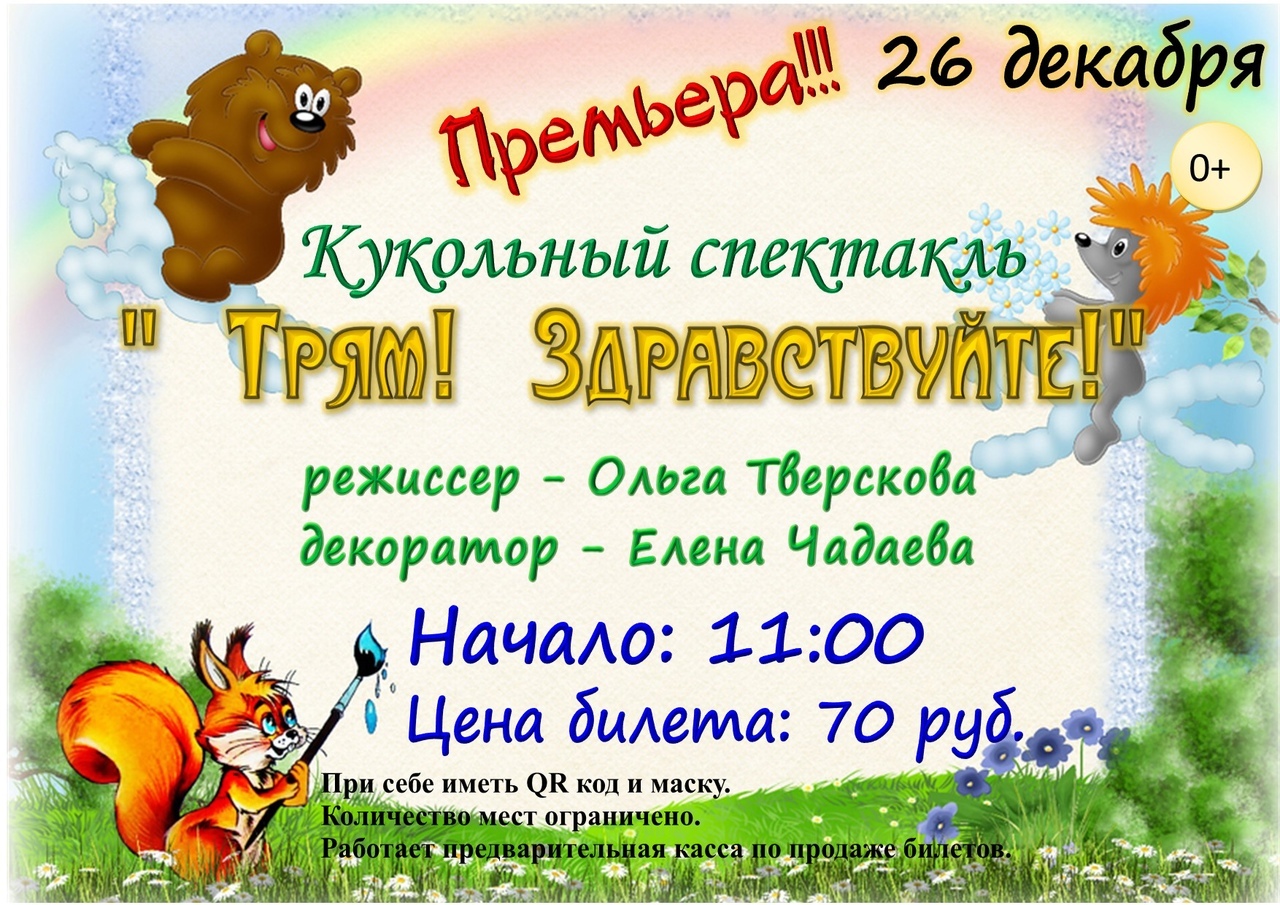 11. 00 Кукольный спектакль «Трям! Здравствуйте!» (0+)