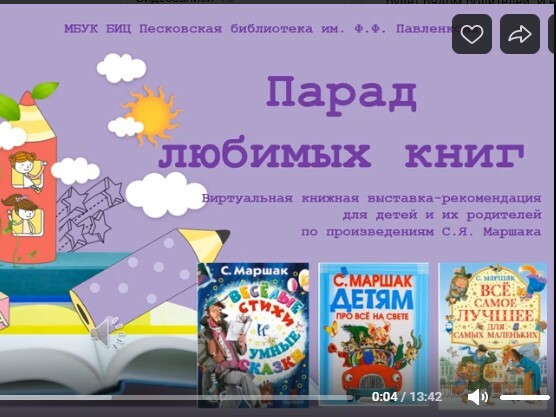 Песковская библиотека им. Ф.Ф. Павленкова совместно с воспитателями и воспитанниками МДОУ №5 «Родничок» присоединились к Международной акции «VIII День поэзии С.Я. Маршака», приуроченной ко дню рождения поэта и переводчика, уроженца Воронежского края, организованной Воронежской областной детской библиотекой. Как вы думаете, что необходимо для поучительного, весёлого литературного путешествия? Правильно! Хорошая добрая книжка! В этом и убедились дошкольники, знакомясь с экспонатами и изданиями книжного развала «Маршак – детям!», виртуальной выставки «Парад любимых книг». Стихи Самуила Яковлевича учили и учат детей красивому поэтическому слову, с их помощью можно рисовать мир, мечтать, рассказывать интересные истории для всех поколений. Поэзия автора настолько оптимистична, что дошкольники с удовольствием слушали «Кошкин дом», «Усатый – полосатый», «Сказку о глупом мышонке» и другие произведения, рисовали иллюстрации к ним, разыгрывали сценки по услышанным стихотворениям, участвовали в фотосессии «Бим-бом! Тили-Бом!», а театрализованная миниатюра сказки «Двенадцать месяцев», разыгранная во время прогулки, стала своеобразным завершением этого яркого, незабываемого дня, познакомившего юных читателей с добрым и радужным миром Маршака.