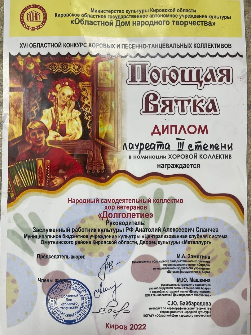 Хор ветеранов «Долголетие» получил Диплом Лауреата III степени, показав высокий уровень исполнительского мастерства, сценической культуры, качественную певческую и хореографическую подготовку.