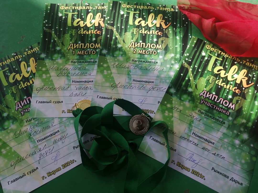 Конечно, с нетерпением каждый ждал результатов конкурса. И наши юные танцовщицы показали высокие результаты. Василиса Шавкунова стала победителем в номинации «Ориентал табла бэби». Анна Шитова получила диплом за II место в номинации «Ориентал дети дебют». Дипломами участника награждены Ксения Ушакова в номинации «Ориентал шоу дети» и народный танцевальный ансамбль «Эхна» в номинации «Группы ориентал шоу дети».