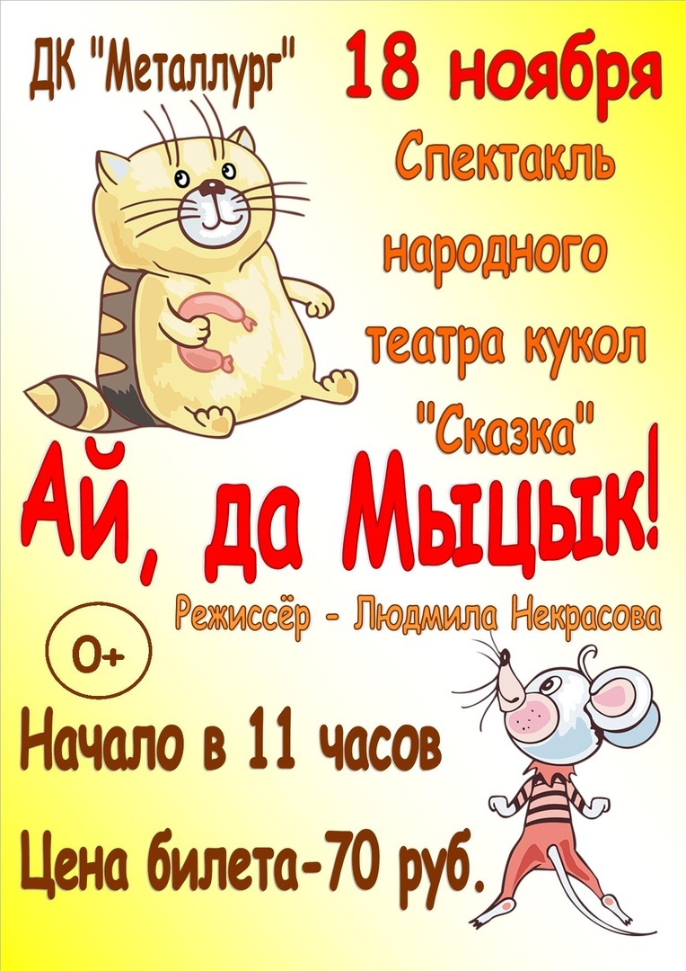 11.00 Кукольный спектакль «Ай, да Мыцык!»