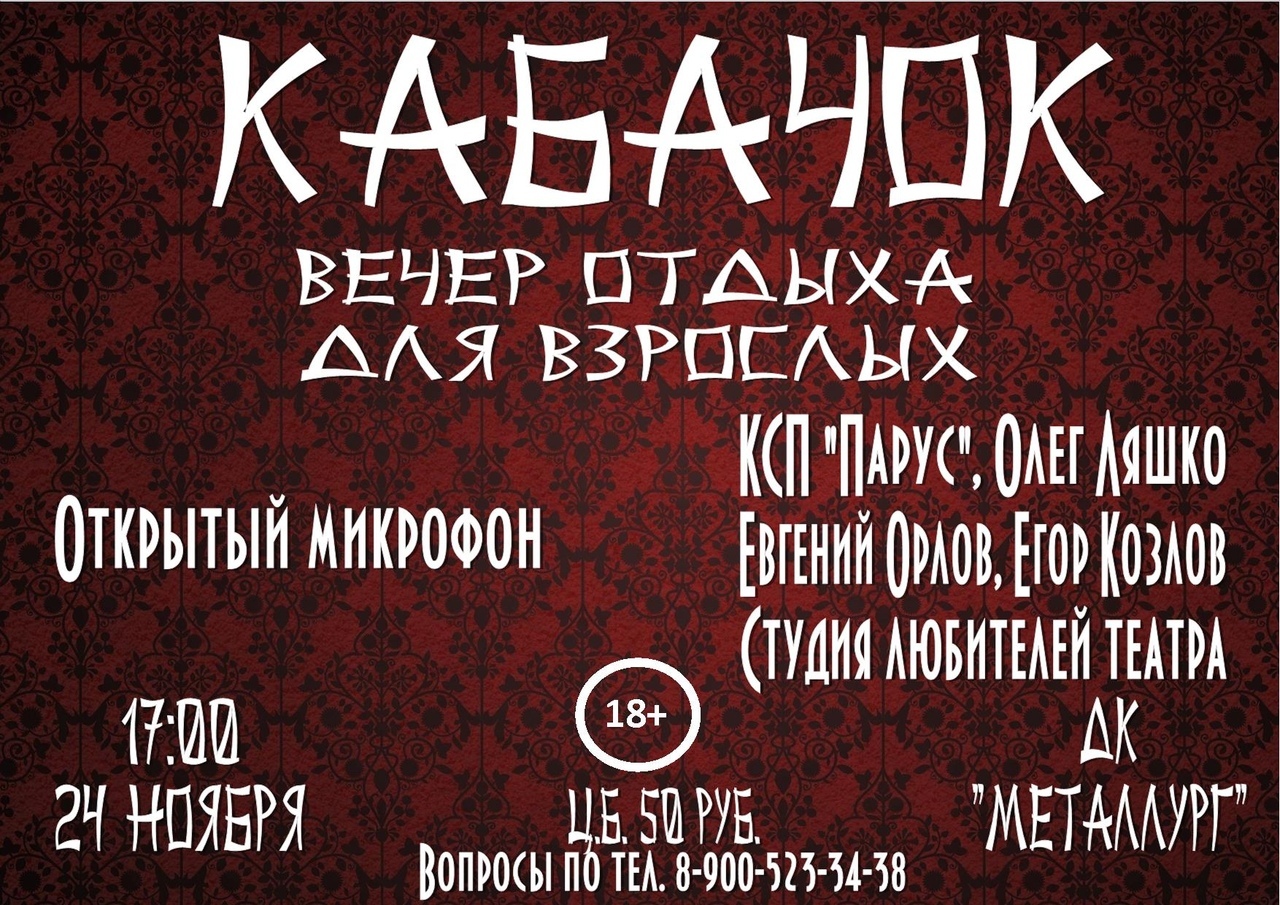 17.00 Вечер отдыха для взрослых «Кабачок» (18+)