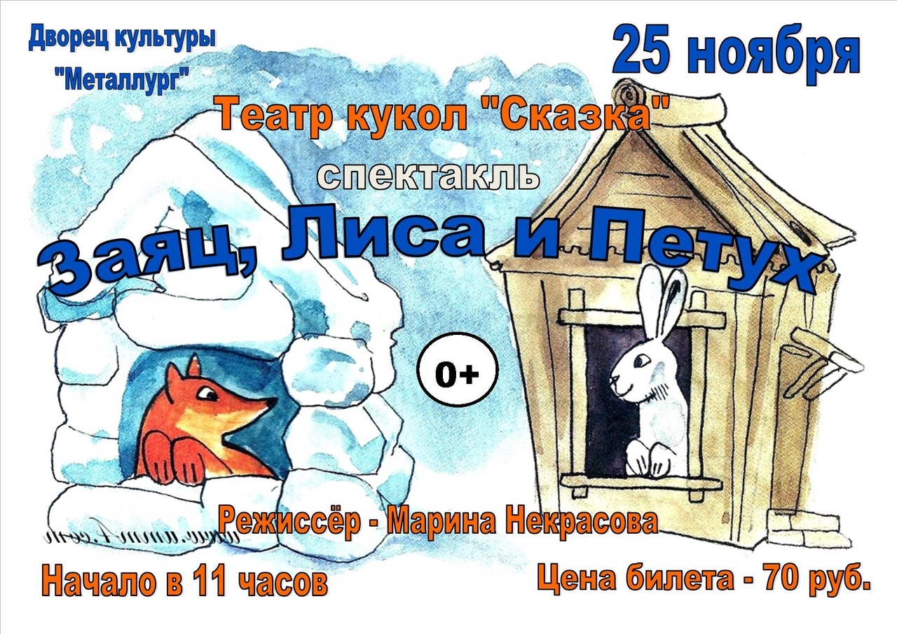 11.00 Кукольный спектакль «Заяц, Лиса и Петух» (0+)
