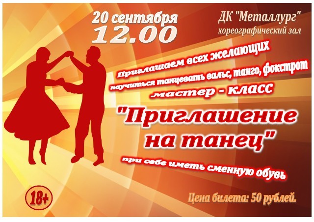 12.00 Мастер-класс по обучению вальсу, танго, фокстроту «Приглашение на танец» (12+)