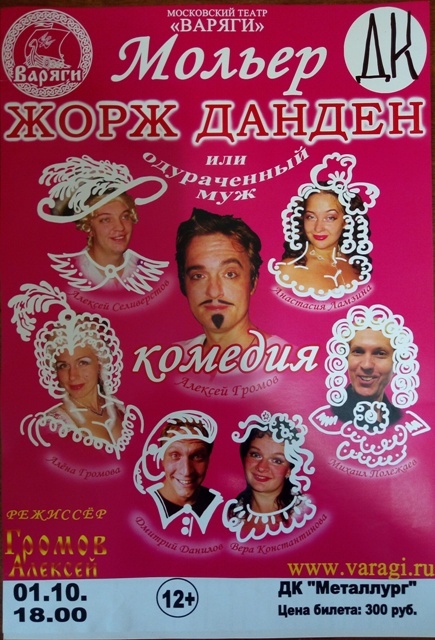 18. 00 Комедия «Мольер Жорж Данден, или одураченный муж» Московского театра «Варяги» (12+)