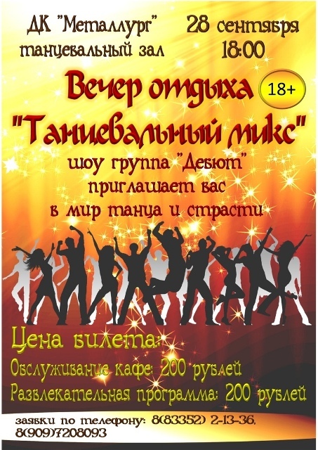 18.00 Вечер отдыха "Танцевальный микс" (18+)