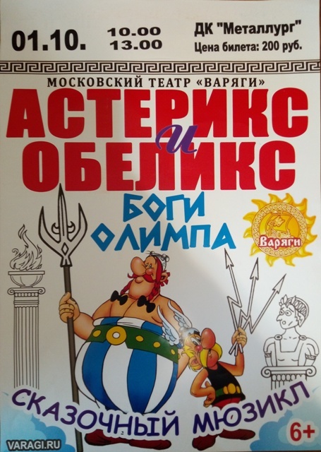 10.00, 13.00 Сказочный мюзикл «Астерикс и Обеликс – боги Олимпа» Московского театра «Варяги» (6+)