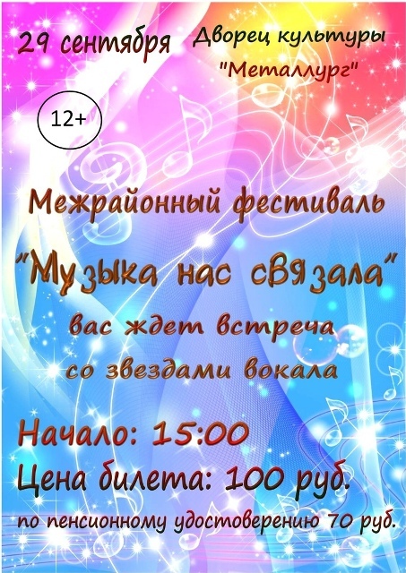 15. 00 Межрайонный фестиваль «Музыка нас связала» (12+)