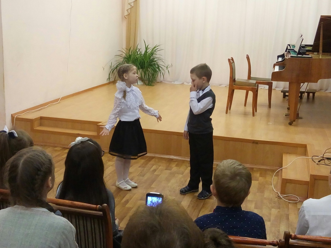 В течение года дети учили скороговорки, трудились над техникой речи, осваивали актерское мастерство, разучивали танцевальные и музыкальные номера. Учащиеся отделения принимали активное участие в различных мероприятиях, фестивалях и конкурсах. Многие имеют награды и благодарности. На концерте прозвучали веселые стихи, басни, сыграны миниатюры, также были исполнены песни и веселый зажигательный танец в народном стиле. А в завершении мероприятия старшими учащимися был показан отрывок из музыкального спектакля «Лоскутик и облако», ребята порадовали своих зрителей яркой игрой и добрыми песнями.