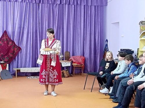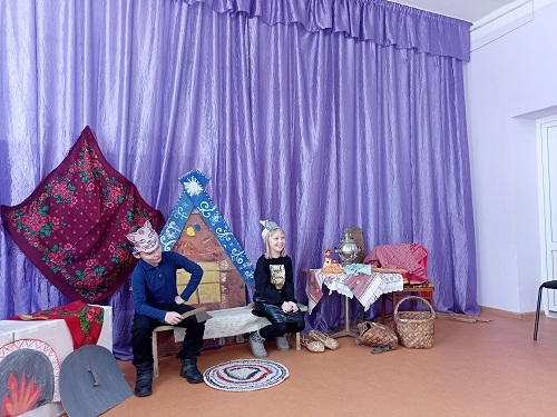 В рамках Всероссийского театрального фестиваля «Вятка для детей» в Детской библиотеке «Маяк» прошла театрально-краеведческая экскурсия «Красна изба». Обучающиеся третьего класса государственной школы познакомились с тем, как жили люди в старину, вспомнили обычаи и традиции русских посиделок, познакомились со старинной утварью и ее применением. Ребята узнали, какие сказки рассказывал вятский народ своим детям во время таких посиделок, приняли участие в инсценировке старинной сказки «Кот и Лиса», взятой из сборника вятского собирателя Д.К. Зеленина «Великорусские сказки Вятской губернии».