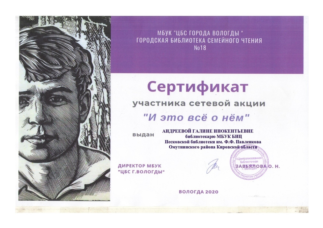 3 октября 2020 года исполнится 125 лет со дня рождения Сергея Есенина, любимого многими поколениями россиян поэта, жизнь которого была удивительно яркой, стремительной, эмоционально насыщенной. Творческое наследие поэта – это сотни прекрасных стихотворений, множество «маленьких» поэм и крупных эпических произведений, художественная проза, обширный эпистолярный жанр. К этой памятной дате сотрудники Песковской библиотеки им. Ф.Ф. Павленкова приняли участие в межрегиональной сетевой акции «И это всё о нём», посвященной 125-летию С. А. Есенина, организованной городской библиотекой семейного чтения №18 МБУК ЦБС г. Вологды, направленной на продвижение чтения, привлечение внимания к творчеству автора, популяризации деятельности библиотек в социальных сетях.