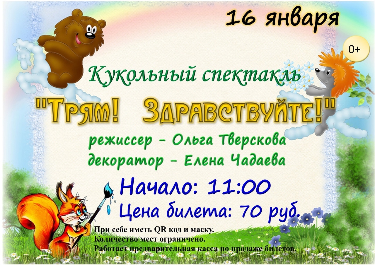 11.00 Кукольный спектакль «Трям! Здравствуйте!» (0+)