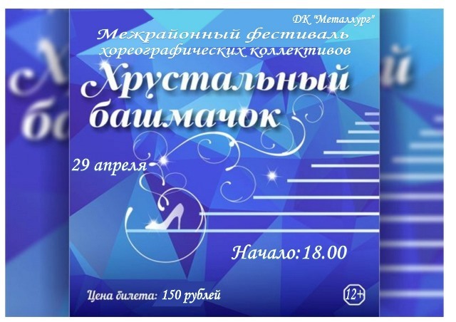 18.00 Межрайонный фестиваль хореографических коллективов «Хрустальный башмачок» (12+)