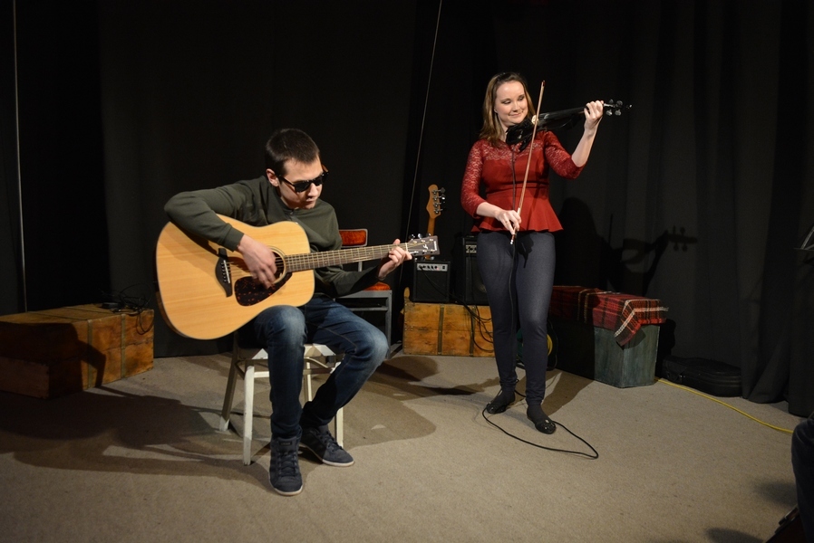 Открыл праздничный вечер номер «Юность в сапогах», который исполнили дуэтом Михаил Масленников (гитара) и руководитель коллектива Надежда Черменина (скрипка). В этот раз главным гостем стал Руслан Огородников, который приехал из города Кирова. Сам Руслан вырос в Омутнинске, но уже несколько лет живет в Кирове, где играет в различных музыкальных коллективах на гитаре. Руслан пишет песни и в этот праздничный вечер он исполнил их. Ребята из «Паруса» внимательно следили за выступлением артиста, улавливая каждый аккорд.