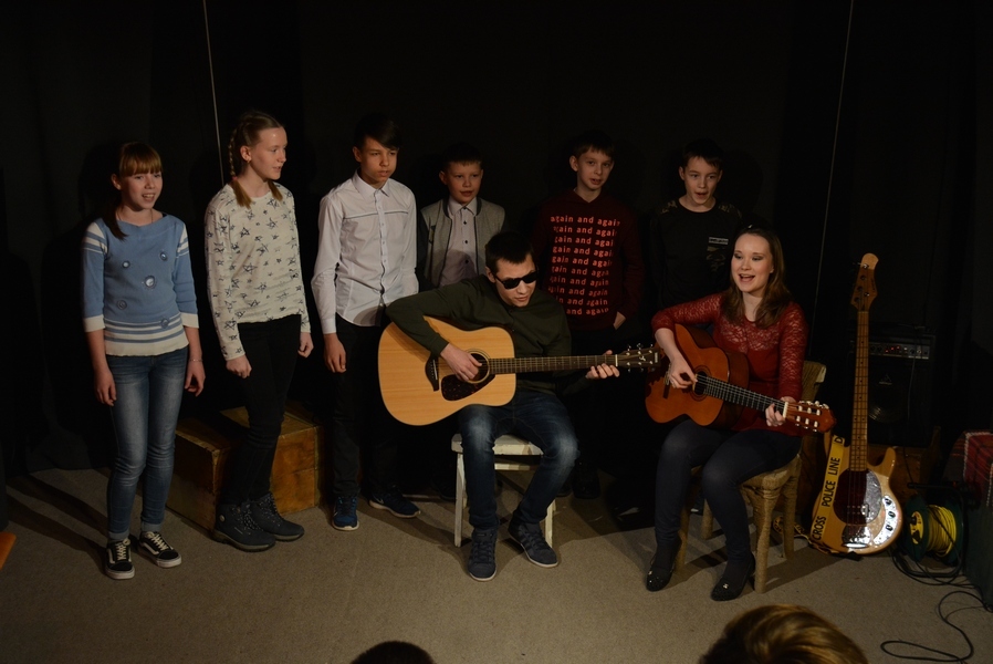 Большим подарком для мужчин стала песня «Демобилизация» исполненная Кристиной Брызгаловой в честь праздника. Участники вечера от души пели свои любимые песни: «Пачка сигарет», «Мой рок-н-ролл», «Алые паруса», «Белые розы», были и песни на английском языке. Интересными были выступления Максима Балыбердина и Артема Пантюхина. Ребята помимо акустической гитары принесли еще бас-гитару и джембе (этнический барабан).