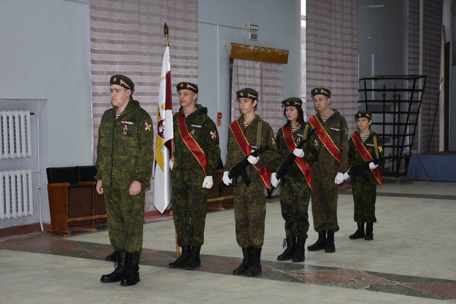 Для руководителей военно-спортивных патриотических клубов и юнармейских отрядов Омутнинского района на базе Культурно-спортивного центра пгт Восточный прошел мастер-класс по представлению знамени команды. Курсанты военно-спортивного патриотического клуба «Росгвардия» имени кавалера «Ордена мужества» А.В. Ветюгова выступили с представлением знамени клуба. Продемонстрировали вынос, представление, склонение знамени. В ходе мастер-класса, были разобраны ошибки, допущенные курсантами при выступлении.