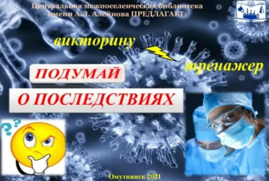 Центральная межпоселенческая библиотека имени А.Л. Алейнова опубликовала на странице социальной сети «Одноклассники» викторину-тренажер «Подумай о последствиях». Меры профилактики COVID-19 до сих пор остаются актуальными. Как мы применяем их в жизни? Насколько серьезно относимся к новой вирусной инфекции? Что заставляет нас не пренебрегать защитными средствами? Какими последствиями угрожает коронавирус в случае игнорирования мер защиты себя и близких? Викторина-тренажер поможет проверить свои знания в этой сфере, напомнить о необходимости соблюдения самых элементарных мер безопасности от заражения вирусом.