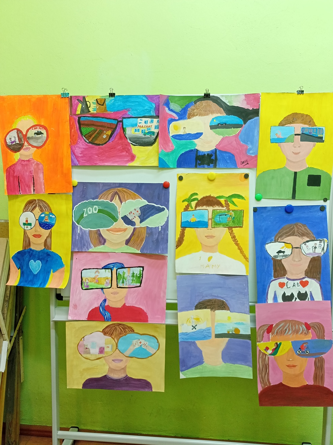 В Детской школе искусств учащимся 1 класса было предложено вспомнить летние деньки. Преподаватель Ситчихина Е.В. Учащиеся выбрали необычный формат изображения рисунков в технике гуаши. Воспоминания о лете они запечатлели через призму очков.
